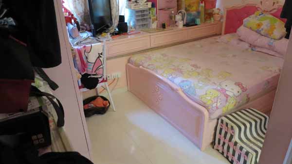 據現場所見,全屋裝潢可謂是「公主風」,牆身多為粉紅色,配上典雅吊燈,令人有彷彿處於公主城堡的感覺。客飯兩廳採用日字設計,界限分明,感覺闊落整齊,亦容易放置傢俬。浴室空間夠用之餘並新淨。3間睡房中,主人房絕對是亮點,在安放大床與衣櫃後,仍有不少空間放置雜物或擺設,房間的洗手間空間亦十分闊落,可方便女主人在此梳妝。