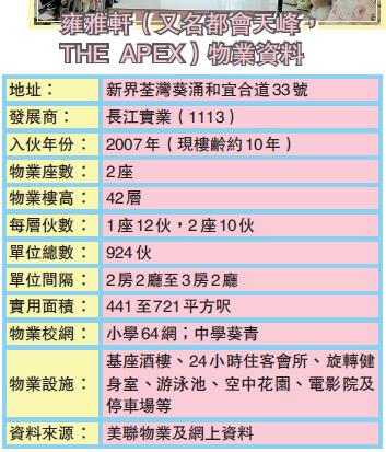 【香港商報網訊】記者曾浩榮報道:香港豪宅盤近期備受歡迎,屢有天價成交出現,刺激市區豪宅樓價進一步上揚。如果想要住得「豪氣」又要夠平,就要去新界舊區尋寶了。位於葵涌區、樓齡約10年的「雍雅軒」算是目標之一,既有豪華風格住客會所,價格又低市區樓一截,為區內換樓升級之選。
