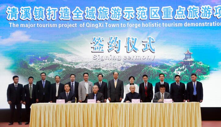 借此东风,清溪镇以创建广东省全域旅游示范区为抓手,积极发挥生态文化资源优势,大力实施“一轴一带五片区”旅游规划。其中“一轴”为全长6.5公里的清凤路景观轴,通过综合功能组织、优美街道景观、舒适公共空间、完善步行系统等四方面,对道路整体形象进行提升,并融合本土特色文化主题,打造成为清溪城市门户大道、产业发展通道和链接全域旅游的绿色生态走廊。“一带”为清溪河景观带,全长16.68公里,将通过彻底的水环境治理和生态修复工程,还原清澈河涌,打造生态景观。“五片区”包括石壁山、清溪湖、铁场村、契爷石水库、大王山五个旅游片区的开发建设,总规划面积约21万亩,将根据各片区的地形地貌、生态和文化资源禀赋等,打造各具特色的旅游景区。是次签约的3个项目就是针对清溪湖片区、铁场片区及大王山片区的环境改造,合作开发建设“古韵铁场村”、“欢乐清溪湖”、“运动大王山”等三大旅游项目。