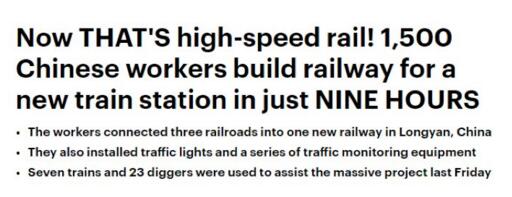 英国《每日邮报》:这才是高铁!1500名中国工人在短短9小时内为新火车站修建铁路。