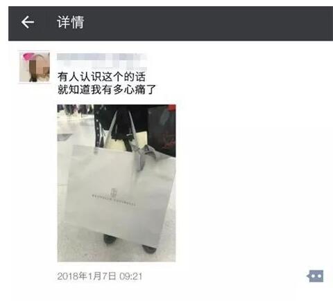 ▲女儿微信朋友圈显示,买了价值几万的名牌包。柴先生供图