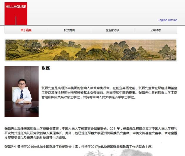 花边风波刚过后不久,2017年11月,红黄蓝教育集团在“虐童”事件爆发后,有网友发现,高瓴资本(HILLHOUSE CAPITAL MANAGEMENT,LTD。)入股红黄蓝,张磊也连带被舆论指责为“赚黑心钱”。这次高瓴资本迅速回应包括新浪科技在内的媒体,“持有红黄蓝股份是之前IPO时买进的,不是新进的,言论属于误导。”