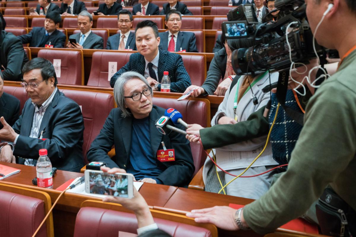 周星馳27日出席政協第十二屆廣東省委員會第一次會議閉幕大會,成為媒體關注焦點。圖:中新社