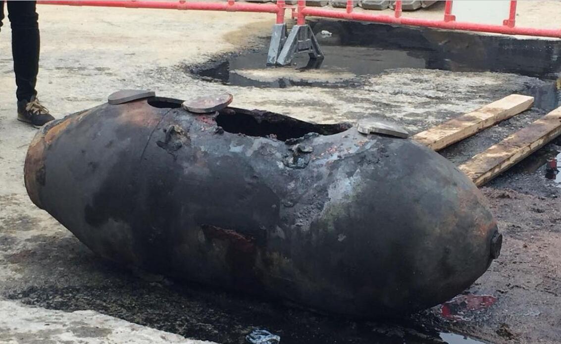 事發在前日早上7時許,現場為灣仔港鐵沙中線地盤,工人發現一枚疑是戰前空投炸彈報警。警方爆炸品處理課專家檢查后,證實為長145厘米、直徑45厘米、重約1000磅的二戰美軍高爆空投炸彈,型號為AN-M65,與2014年在灣仔發現的AN-M66炸彈類同,估計在1941年至1945年的第二次世界大戰期間投擲。由於其引爆管有損壞,專家認為移動會有危險,決定不即場引爆,改用水力磨沙技術切割開炸彈殼,再將內裹的約500磅高爆性的黃色炸藥取出,以不超過300度的低溫炸藥燃燒。