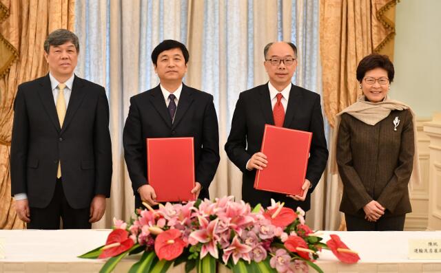 【香港商報網訊】記者馮煒強報道:香港特區政府與中國鐵路總公司於昨日在禮賓府簽署《關於廣深港高速鐵路香港段運營準備工作重點事項安排備忘錄》,計劃高鐵開通初期每日開行127對列車,并將以「分段計費、各自定價、加總核收」的原則制訂票價。行政長官林鄭月娥指,高鐵開通后實現與全國高鐵網絡的互聯互通,有助香港與內地各大城市之間加強交流,促進優勢互補。運輸及房屋局局長陳帆表示,有信心香港段日后可以維持良好和健康的財政狀况,在50年營運周期計達致有盈利。