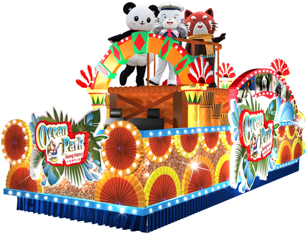 花車方面,包括有國泰航空的「如意團結聚慶團圓」,設計以中國傳統藝術如意結為主題,透過花車中心圓形屏幕出現的如意結,於一年之始,祝願大家團圓美滿、幸福吉祥;優質旅游服務協會的「優質匯聚福犬迎春賀豐年」,設計匯聚「優質旅游服務」計劃商戶的商品及美食向大家展示香港豐富多元、包羅萬有的購物和餐飲選擇:及旅發局的「開年開運開心」,設計采用經典花車造型,車身遍布祝福語、元寶及桃花等,祝願大家狗年暢旺,好運齊來等。