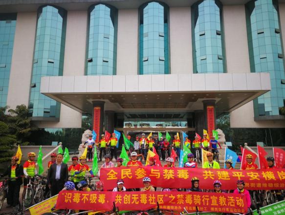【香港商报网讯】记者朱开芝、通讯员戴晓彤、叶章山报道:为贯彻落实区委区政府“全民禁毒”工程工作,构建横岗街道专群结合的治理体系。1月27日下午,深圳市龙岗区横岗街道在街道大院内隆重举行禁毒骑行活动。街道和,龙岗区政法委(社工委)、横岗派出所、龙岗区电视台、横岗自行车骑行协会,共计约100人参加了此次活动。