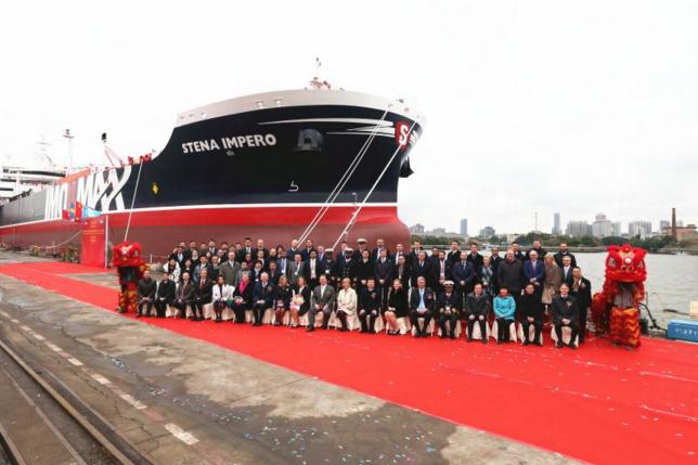 【香港商报网讯】记者李苑立报道:元月31日,广船国际有限公司为瑞典Stena Bulk 航运公司建造的一艘50000吨成品油/化学品船在荔湾厂区命名为“史丹纳帝国(STENA IMPERO)”号。这艘船是广船国际在荔湾老厂区建造命名的最后一艘船,同时也是广船国际为瑞典Stena Bulk 航运公司建造的同批次13艘船中的最后一艘船。