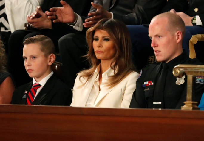第一夫人梅拉尼婭打破傳統,選擇陪同來賓一起到國會山莊,而並非陪伴丈夫特朗普出席。 路透社
