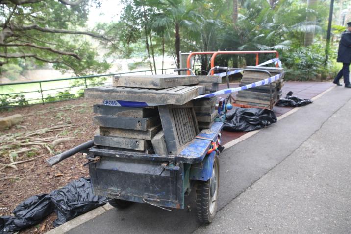 警員一擁而上,3名男子見事敗拔足狂奔,并一度跳落明渠逃避追捕,但最終仍被截獲,經點算后3人共偷走公園51個坑渠蓋,總值約1萬元,警方同時扣查賊人的七人車及中型貨車,發現涉案貨車車牌以黑色膠紙將兩個「9」字變為「8」字掩人耳目。警方相信賊人將偷來的坑渠蓋當成廢鐵變賣圖利,案件交由大埔警區刑事調查隊第11隊跟進。