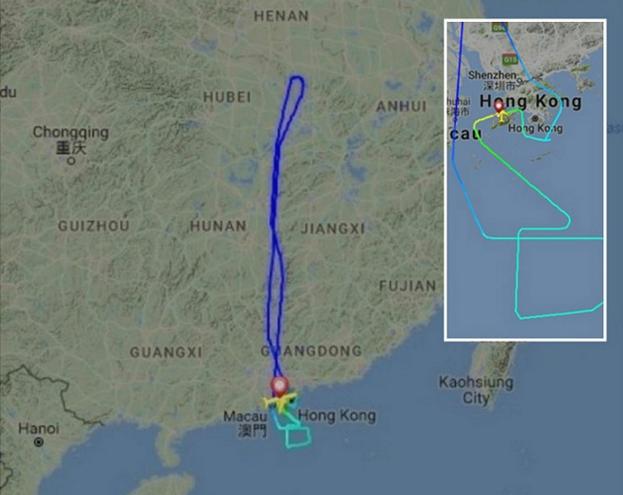客機飛至武漢上空附近時,機師發現引擎火警鐘響起。Flightradar24圖片