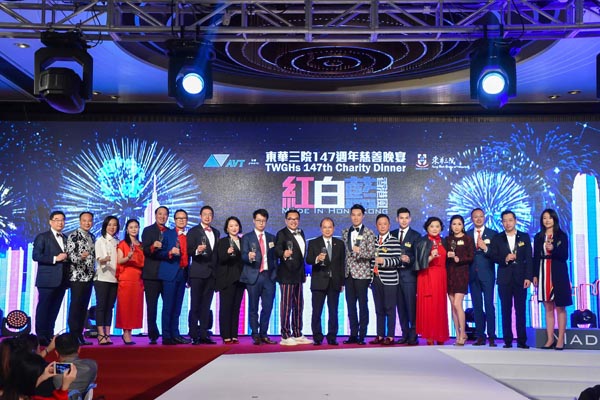 【香港商報網訊】AVT公司呈獻:東華三院147周年慈善晚宴日前假香港洲際酒店大禮堂舉行,今年以「紅白藍·香港風」為主題,東華三院主席李鋈麟等首長及嘉賓穿上以紅、白、藍顏色為主色的服飾以配合晚會主題。充滿本土特色的「紅白藍」被視為香港文化的代表之一,亦為該院標誌的主色,象徵該院與香港同步成長,同時亦為東華三院醫療、教育及社會服務籌募經費。
