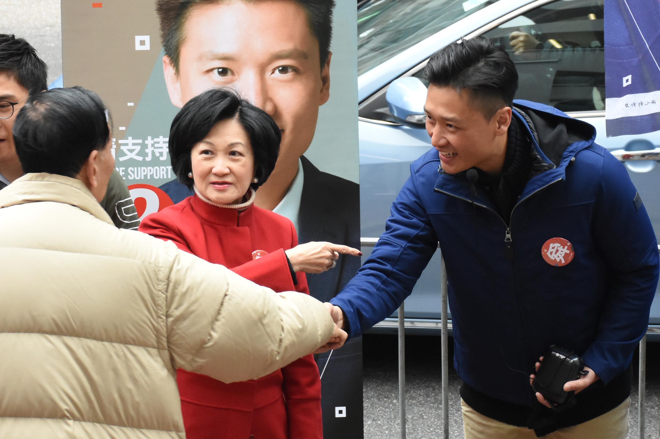 郑泳舜获叶刘淑仪支持,在红磡街头展开拉票活动。