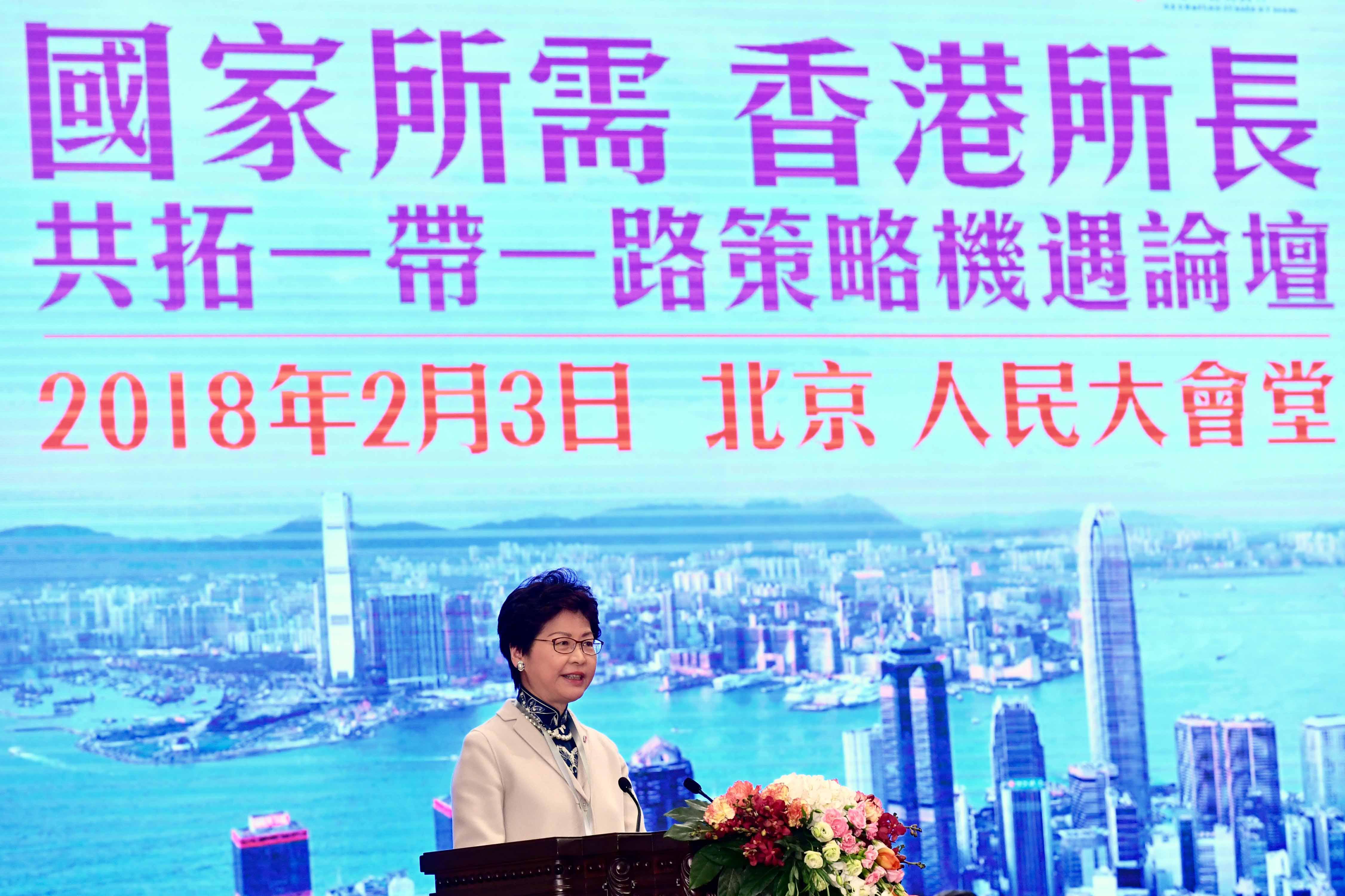 我今天十分高興與大家在人民大會堂相聚,一起參與以「國家所需、香港所長──共拓一帶一路策略機遇」為主題的論壇,共商發展大計,共建合作平台。首先,我謹代表香港特別行政區政府感謝張德江委員長自2016年5月出席在香港舉行的「一帶一路」高峰論壇以來,對香港特區有關工作的支持,又於今天出席論壇作主旨演講,指導我們的工作,為我們加油打氣。同時感謝楊潔篪國務委員、王勇國務委員、稍後出席的全國政協副主席陳元先生,以及各位部委領導蒞臨參與。