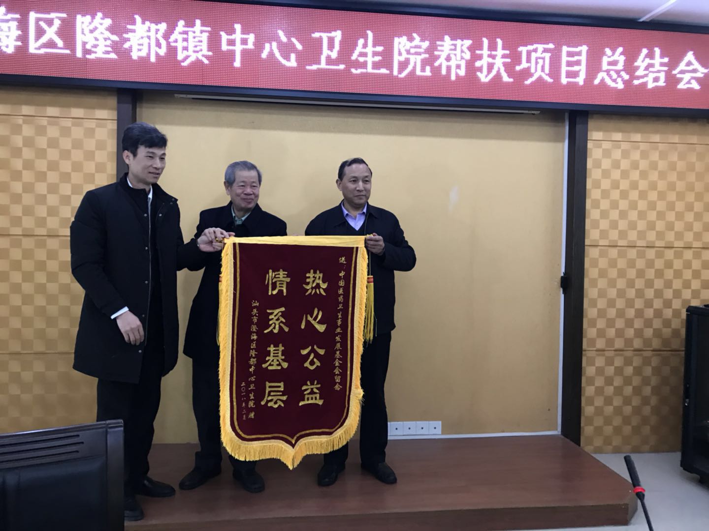 中国医药卫生事业发展基金会郭志福副秘书长、李美鸿部长,香港商报原社长、基金会理事吴松营,汕头市公益基金会会长张泽华,深圳澄海商会秘书长蔡淳林,以及澄海区政府有关部门、隆都镇政府等领导和嘉宾出席帮扶项目总结座谈会。