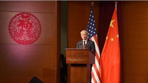 中国驻美大使崔天凯日前在使馆内出席春节联欢活动时就近期美方有关中美关系的多个误判做出回应。 中新社记者 刁海洋 摄