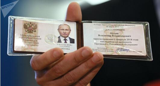 普京的候选人参选证书 图源:俄罗斯卫星通讯社