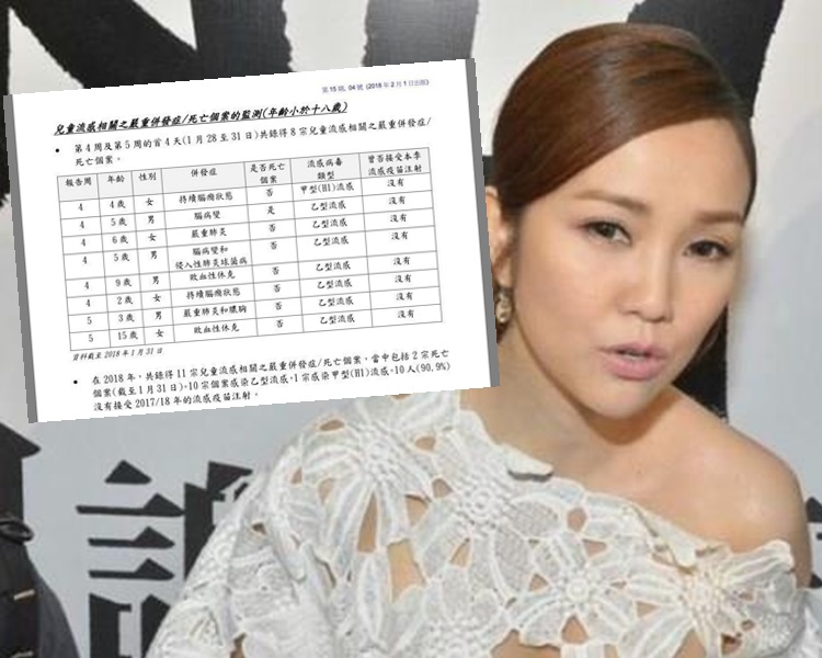 繼港大微生物學系傳染病學講座教授袁國勇批評謝安琪資料完全錯誤後,網民亦紛紛出手。有網民上載一張衞生防護中心今年第15期「流感速遞」的文件截圖,指今年共錄得11宗兒童流感相關之嚴重併發症或死亡個案,當中包括兩宗死亡個案(截至1月31日)、10宗個案感染乙型流感,1 宗感染甲型(H1)流感、10人(90.9%)沒有接受 2017/18 年的流感疫苗注射,直接「秒殺」Kay的疫苗無效論。