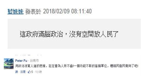 台湾花莲强震,两岸同胞心急如焚。然而,在大灾难面前,台当局却仍大玩政治化。对于台陆委会此言论,台湾网友十分愤怒,有人怒批台当局“政治凌驾人道的思维,满脑子政治,根本没有民众。”还有人不满台当局媚日行径,讽刺道“如果换成日本,他又会说,求求你,请把台湾当成你的地方政府。”