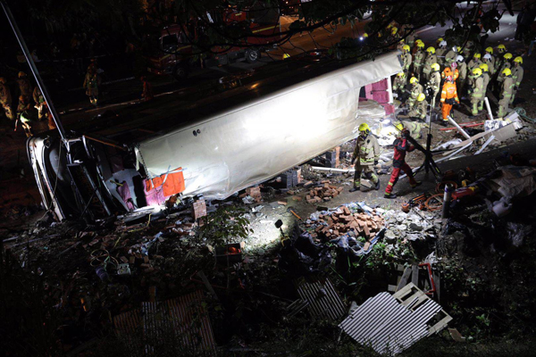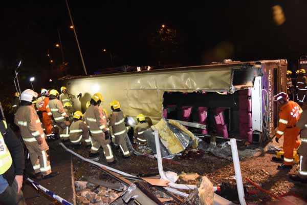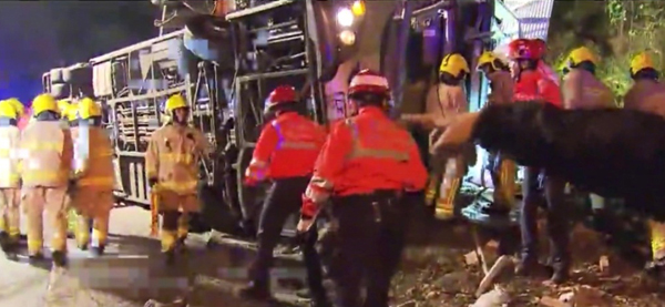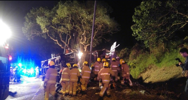 消防處署理高級消防區長梁國柱表示,消防處下午6點15接報,第一架救護車5分鐘到達現場。消防人員發現巴士上下層分別有大量傷者,有傷者自行從巴士逃出。車廂內空間狹窄,出現人疊人現象,必須用切割工具進行切割,在車頭、車尾騰出空間拯救。