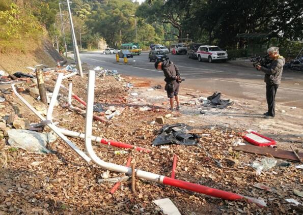肇事巴士撞毀的巴士站整個損毁。
