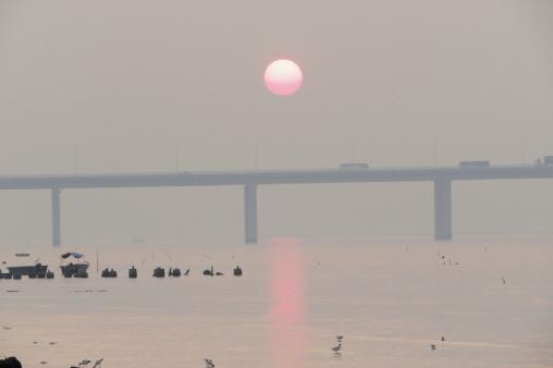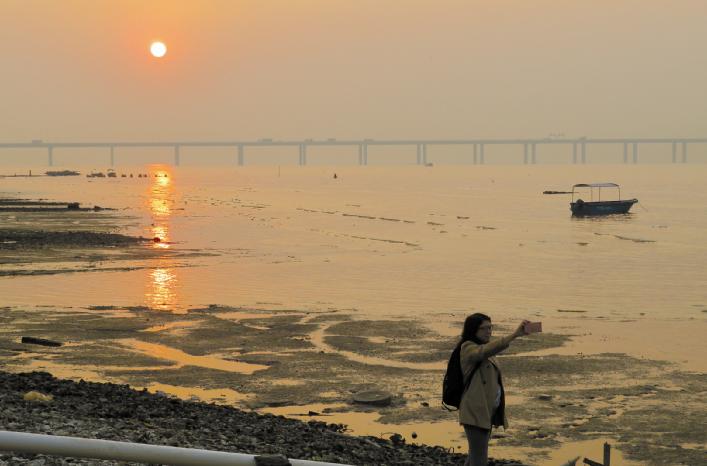 遠方的深圳灣大橋令流浮山日落增添特色。
