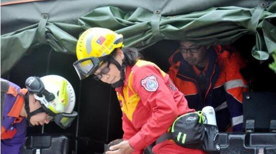 台湾花莲地震最后两名失联人员2月11日上午被证实罹难。图为11日从地震“重灾区”花莲云门翠堤大楼撤离的救援人员。 中新社记者 肖开霖 摄