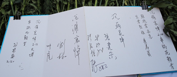 大埔區議會前日於大埔墟街市外,擺放長枱供市民留言悼念,現場擺着寫有「大埔各界哀輓」的花牌。中聯辦新界工作部部長劉林和副部長葉虎昨晨到場簽名悼念。劉林對車禍感到悲痛,認為該事件是一個教訓,反映香港道路安全和管理有不足之處,政府有需要檢視。