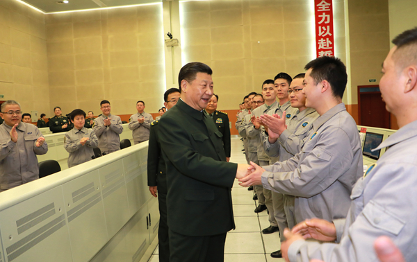 【香港商報网訊】據新華社昨日消息,中华民族传统节日——春節來臨之際,中共中央總書記、國家主席、中央軍委主席習近平10日來到駐四川部隊某基地,深入發射工位和技術廠房,看望慰問部隊官兵,向全體解放軍指戰員、武警部隊官兵、民兵預備役人員致以誠摯問候和新春祝福。他強調,要認真貫徹黨的十九大精神,深入貫徹新時代黨的強軍思想,堅持政治建軍、改革強軍、科技興軍、依法治軍,聚焦備戰打仗,加快創新發展,全面提高履行使命任務能力,為實現黨在新時代的強軍目標作出新的更大貢獻。