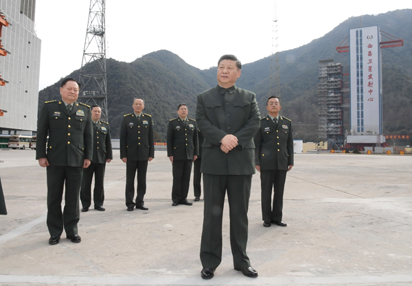 2月10日,中共中央总书记、国家主席、中央军委主席习近平来到驻四川部队某基地,深入发射工位和技术厂房,看望慰问部队官兵,代表党中央和中央军委,向全体解放军指战员、武警部队官兵、民兵预备役人员致以诚挚问候和新春祝福。这是习近平来到某基地发射场听取情况汇报。新华社记者李刚摄