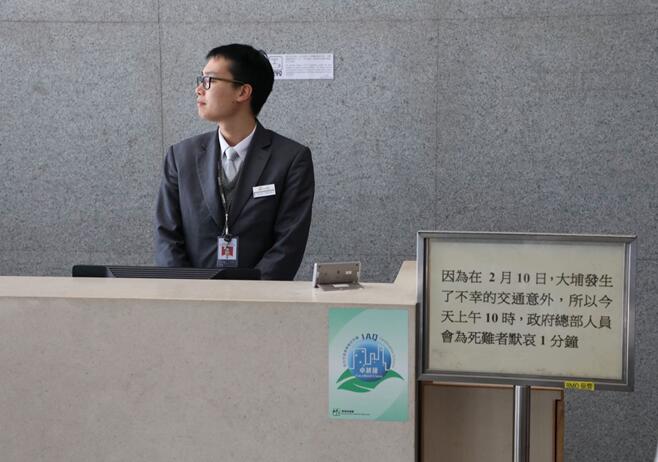 上午十時,政府總部工作人員為大埔車禍嚴重意外遇難者默哀一分鐘。