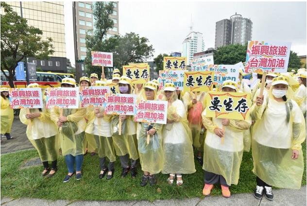 陆客大减,曾引起台湾旅游业万人上街,大喊“要陆客、求生存”。(图源:台湾“东森新闻云”)