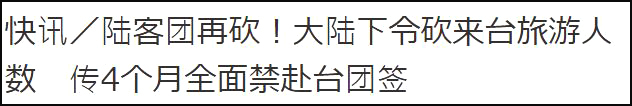 报道还称,另一消息来源指出,一些省份的团客被要求按2017年减少50%到60%。至于10到12月台湾选举期间,确有听说停办跟团游,但多家从业者说法不一。有的说有此消息,也有说“完全不属实”。