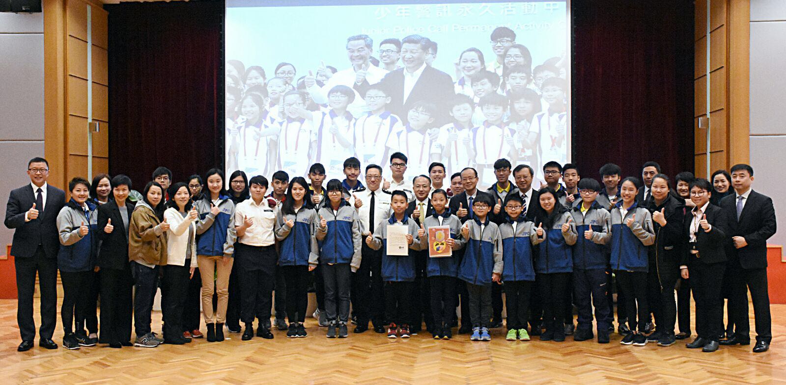 王志民主任轉交習近平主席回信,並與香港少年警訊成員合影留念。記者 馮瀚文攝