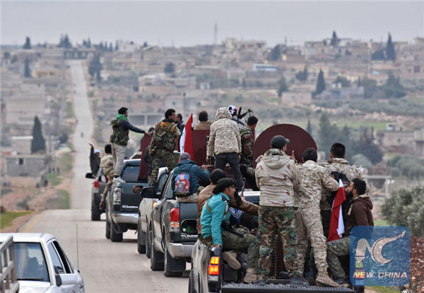 支持政府的叙利亚武装人员及车队进入叙利亚被捕阿夫林地区。网络图片