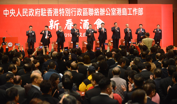 【香港商報网訊】記者葉佩瑜報道:適逢年初八,中聯辦港島工作部昨日舉辦新春酒會,中聯辦副主任何靖及外交部駐港特派員公署副特派員趙建凱等均有出席。中聯辦港島工作部部長吳仰偉致辭時鼓勵香港要抓緊「一帶一路」及「粵港澳大灣區」的機遇,充分發揮「超級聯繫人」的角色,而面對「港獨」時則必須堅守底線,予以強烈反對。