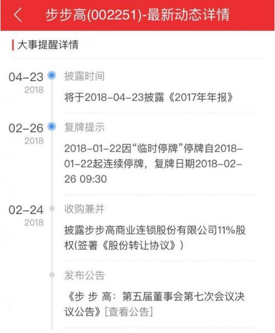 2月24日,步步高发布公告称,:2018年2月14日,公司股东张海霞、新沃基金管理有限公司与林芝腾讯科技有限公司(简称“林芝腾讯”)签署《股份转让协议》,约定张海霞将其持有的步步高无限售流通 A 股 34,556,158 股(占公司总股本的4%)股份、新沃基金管理有限公司将其持有的步步高无限售流通 A 股 17,278,079股(占公司总股本的 2%)股份一起转让给林芝腾讯。此次股份转让完成后,林芝腾讯将持有公司股份 51,834,237 股,占公司总股本的 6%。
