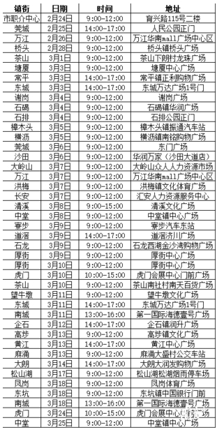 据东莞市人力资源局透露,为解决年后企业开工的用工需求,2月24日至3月25日,东莞市各镇街均将举办“2018年东莞市春风行动现场招聘会”,为节后返莞务求职者提供就业机会。2000多家企业将为求职者提供10多万个岗位,“春风行动”的所有招聘会对企业和求职者均免费。