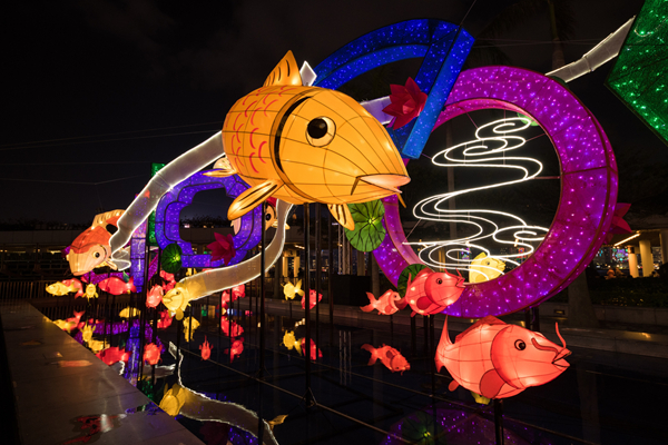 於文化中心露天廣場舉行的春節專題綵燈展「魚躍香江樂滿城」,將展出至3月4日。