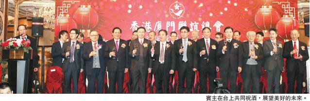 【香港商報网訊】記者曾美玲報道:香港廈門聯誼總會日前假港島香格里拉酒店舉行「2018戊戌年新春春茗」,理事長林龍安、監事長蔡瑞義、副理事長洪頂超、楊毅融等一眾首長,聯同中聯辦副主任何靖,廈門市委統戰部部長張燦民,香港福建社團聯會主席吳良好等主禮嘉賓向大家拜年,約500位鄉親歡聚一堂,同慶佳節,喜氣洋洋。
