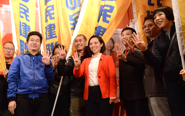 陳家珮(右四)造勢晚會籲選民積極投票4號支持。 記者 崔俊良攝