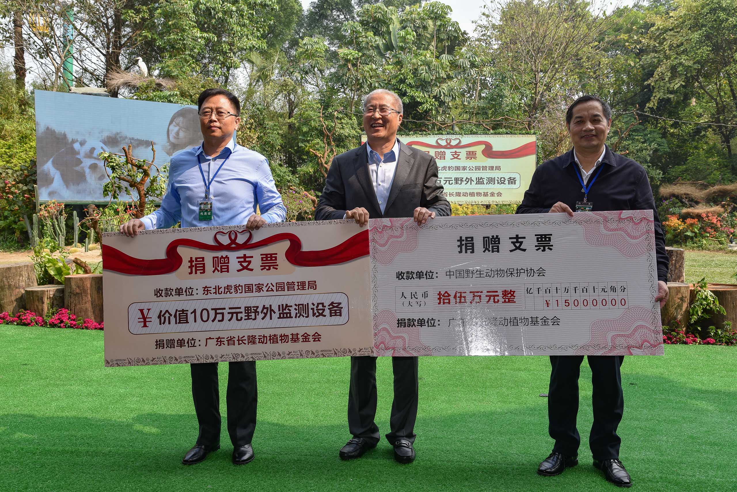 在当天启动仪式上,“长隆动植物保护基金会”向东北虎豹国家公园捐赠了一批红外线相机和资金,用于虎豹资源监测和巡山清套活动。中国野生动物保护协会、中国野生植物保护协会授予樊昭甫等26名同志“打击野生动植物非法贸易先进个人”称号,以表彰他们为打击野生动植物非法贸易所做的努力,并为“绘眼看自然—‘长隆杯’第一届自然笔记大赛”获奖代表颁发了证书和奖品。