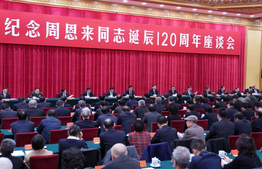 習近平還指出,周恩來是自我革命、永遠奮斗的杰出楷模。我們要向周恩來同志學習,更加自覺地堅定黨性原則,發揚徹底的自我革命精神,不斷增強黨自我净化、自我完善、自我革新、自我提高的能力,不斷增強本領,不斷增強黨的政治領導力、思想引領力、群眾組織力、社會號召力,確保我們黨永葆旺盛生命力和強大戰斗力。