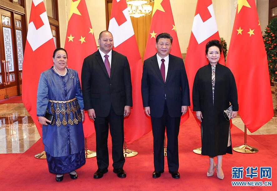 3月1日,国家主席习近平在北京人民大会堂同汤加国王图普六世举行会谈。这是习近平和夫人彭丽媛同图普六世国王和娜娜茜帕乌王后合影。新华社记者庞兴雷摄