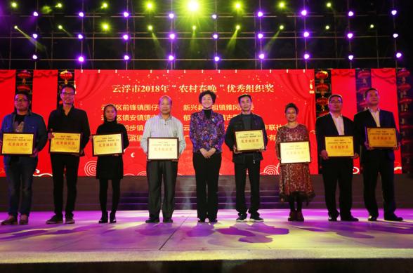 晚会上,云浮市委书记、市人大常委会主任庞国梅为2018年云浮市“农村春晚”优秀组织奖的8个获奖单位颁奖,市委常委、宣传部长郭亦乐为2018年云浮市“农村春晚”优秀节目的29个获奖单位颁奖。