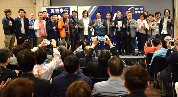 謝偉銓昨造勢大會獲多位業界人士支持。 記者 崔俊良攝
