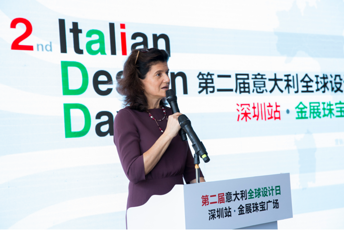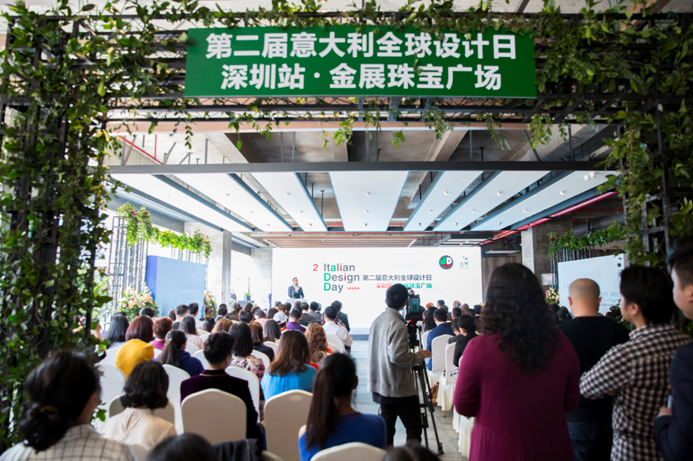 下午,2018意大利全球设计日·深圳站金展珠宝广场沙龙分享活动在深圳市金展珠宝广场四楼举行。沙龙出席的嘉宾包括:意大利驻广州总领事 Laura EGOLI艾古丽、意大利“设计大使”Barbara Pietrasanta、意大利贸易委员会广州代表处首席代表Paolo Quattrocchi夸特洛奇、中国意大利商会广州经理Romina di Martino、意大利驻广州总领馆商务专员Rossella Giacometti、意大利驻广州总领馆商务专员陈文涛、深圳市罗湖区人民政府副区长左金平、深圳市罗湖区经济促进局局长周建军、深圳市文化创意行业协会秘书长陈鹤平、深圳市珠宝首饰设计协会会长杜半、深圳市时尚买手协会会长苗志国、金展珠宝广场总经理王振、国研科教工程技术研究院院长邵亚、798艺术区联合创始人及中国(深圳)创意新干线董事长程磊、中国(北京)博士智库总监及旅意青年设计师孟令远和约200位中意设计师及企业代表等出席了活动。本次活动由意大利外交部、意大利文化遗产、活动与旅游部、米兰三年展机构、意大利驻广州总领事馆主办,国研智库(DRTT)支持,中国(北京)博士智库、深圳市文化创意行业协会、中国(深圳)创意新干线承办,深圳市金展珠宝广场联合承办。活动中,中意双方代表还考察了金展珠宝广场,并走访了部分罗湖珠宝行业品牌。