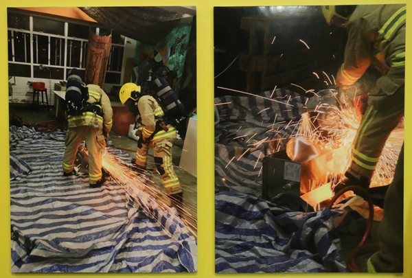 海關請來消防員動用電鋸浻開2部制麵條機,發現內藏可卡因。海關提供圖片