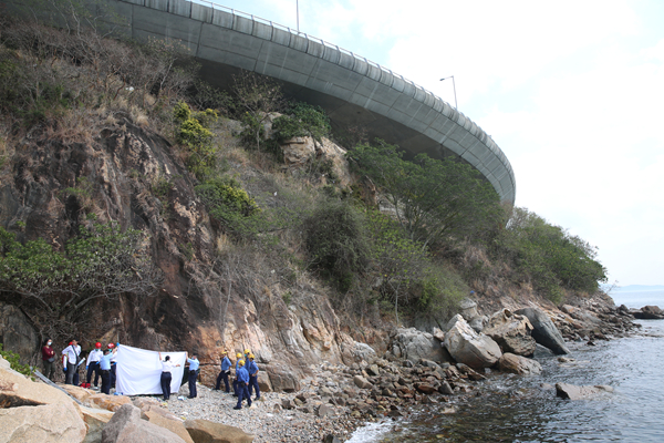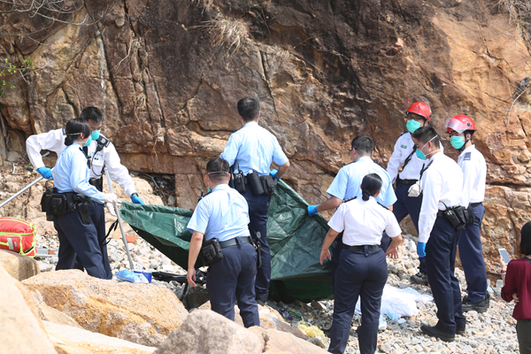 現場為薄扶林大口環道31號對開石灘上山坡,昨日中午12時許,有釣魚人士發現一名男子倒Δ在山坡上,遂報警求助。救援人員接報到場,證實男子已明顯死亡,消防員用鋁梯攀上山坡,合力將其抬落石灘,警方封鎖現場進行調查,用帳篷遮蓋遺體。
