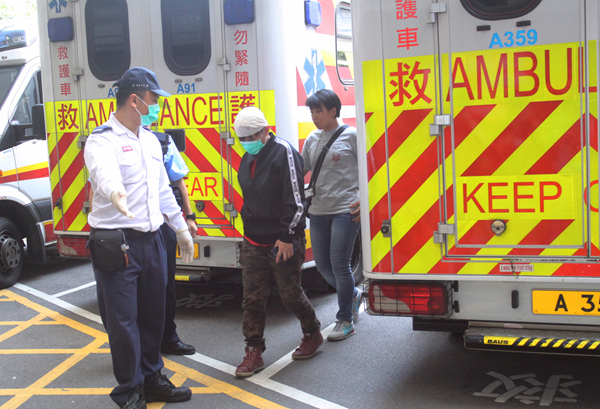 遭扑頭行劫女事主(中)送院。記者區天海攝